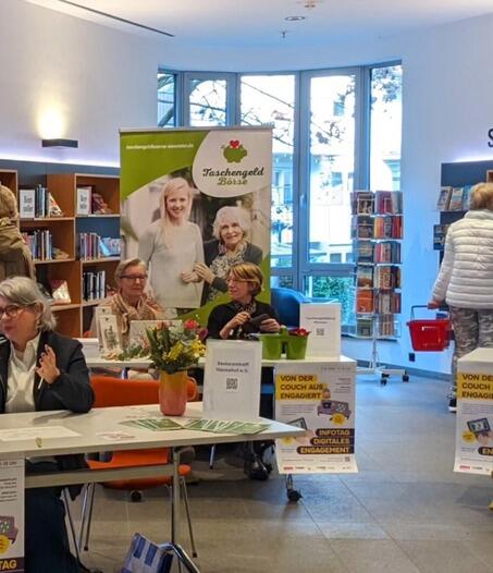 Am Samstag, 17. Januar 2026 war das Team der Taschengeldbörse mit einem Infostand beim Infotag "Digitales Engagement" in der Stadtbücherei Münster. In vielen netten Gesprächen haben wir uns mit Interessierten, Ehrenamtlichen und anderen Organisationen über unsere Arbeit als Vermittlungsstelle von Taschengeldjobs zwischen Senior*innen und Jugendlichen ausgetauscht. Sie konnten nicht vor Ort sein und interessieren sich für die Taschengeldbörse? Dann melden Sie sich bei uns!
